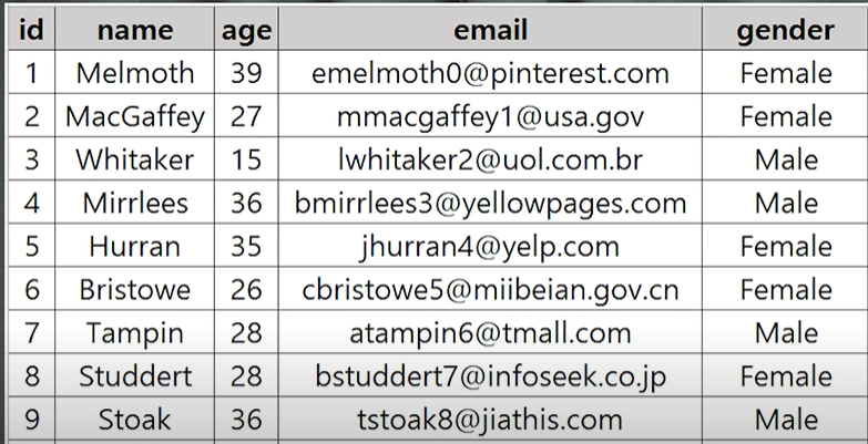 SQL DB : 데이터를 행과 열이 있는 표 형태로 저장