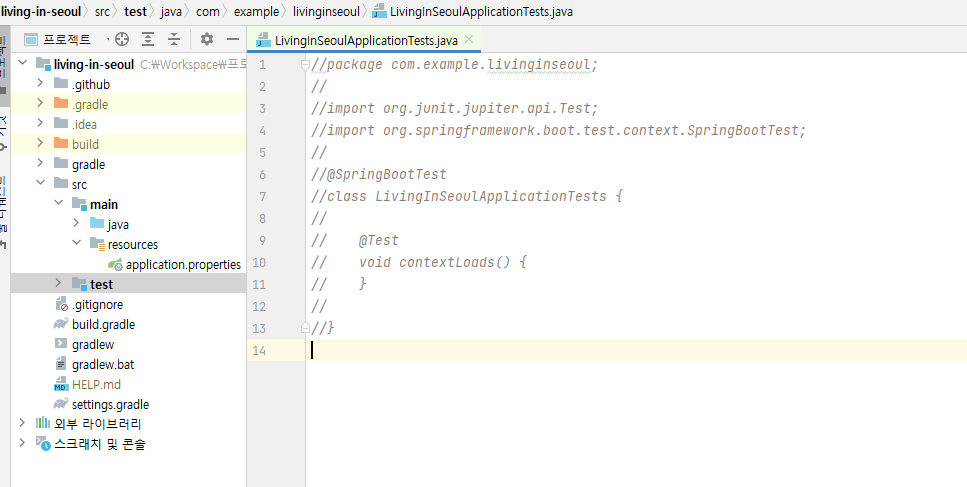 테스트 코드와 충돌이 있을 수 있으니 주석처리를 해보라고 하심.