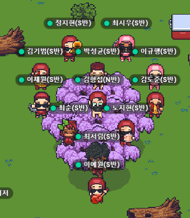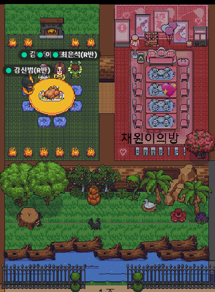 참고로 초록색의 족장님과 브루노마스는 내가 아니다. 착한 사람들이니 갱단이라고 오해하지도 말 것. 안타깝게도 게더가 굉장히 끊기고 느려진다는 의견이 있어서 지금의 마당은 텅 비어버렸다. 나의 삶의 터전이 사라진 것이다. 그렇게 나는 용맹한 부리더 타잔에서 다시 변장술이나 하는 개발자 조무래기로 돌아가게 되었다. 그래도 나는 행복하다.