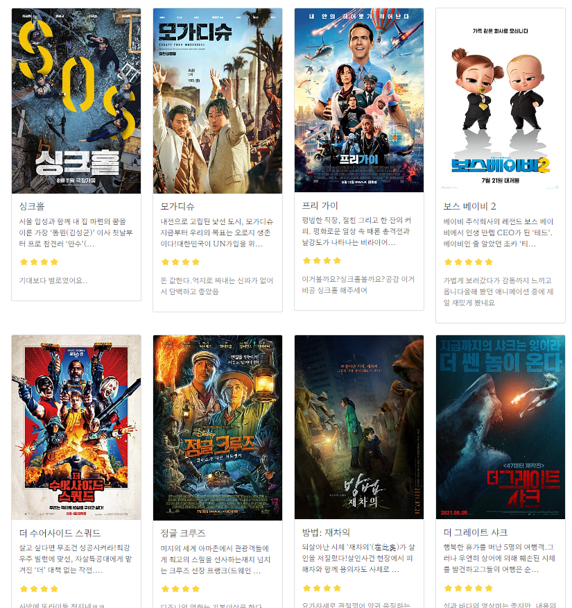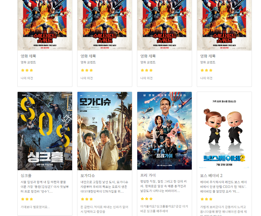 여기 있는 데이터들을 가져와서 카드 형식으로 보여지도록 만들어 보게뜸!