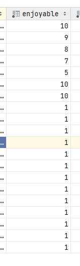 total_enjoyable이 1로 잘 반영되었음을 확인하였다.