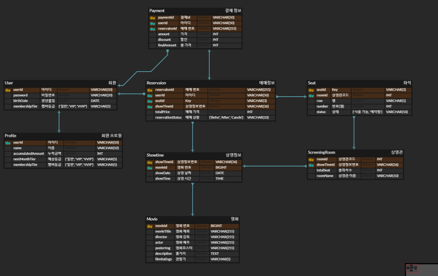 [영화 예매 웹사이트] ERD 본문