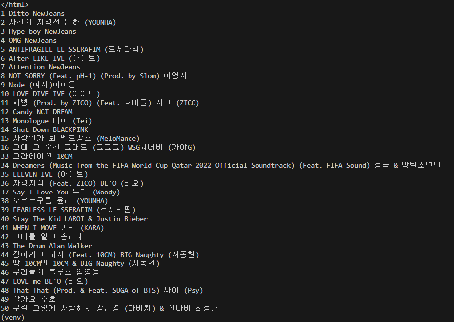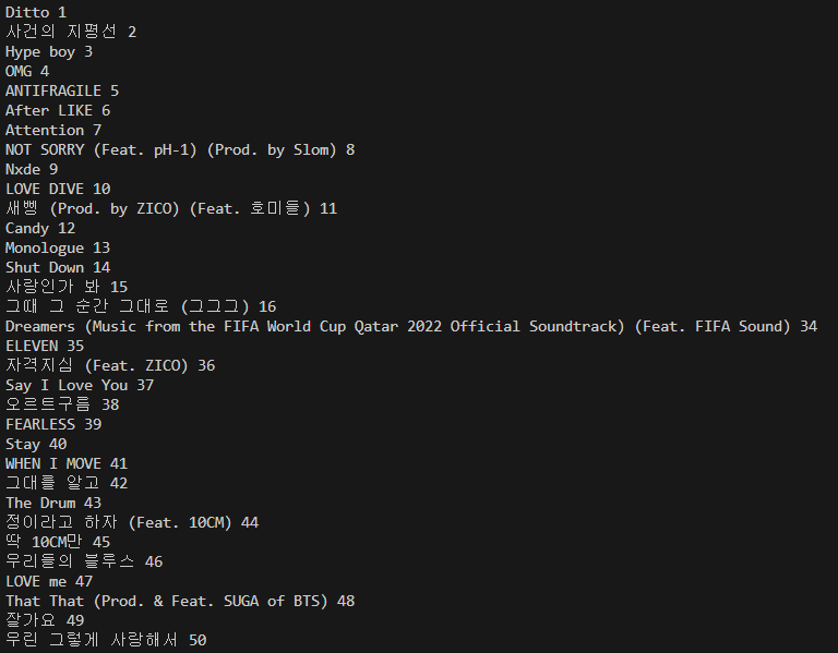 *지니뮤직의 1~50위 곡을 스크래핑 해보기.