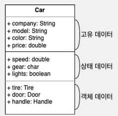 부품 데이터와 나머지 고유한 데이터, 상태 데이터를 포함한 자동차 클래스