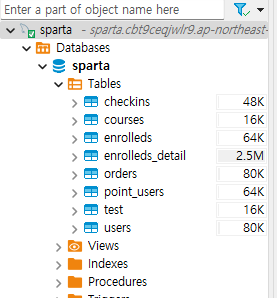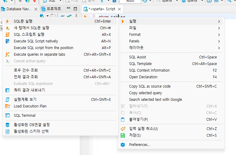 왼쪽에 파일들을 열어 Tables를 확인 하거나
