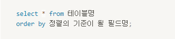 * order by는 숫자 뿐만 아니라 영어, 한글, 시간 순으로도 정렬이 가능하다.