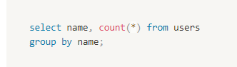 3) "name, count(*)" name으로 묶은 것과, 묶은 것의 count를 하나씩 해서 보여줌.
