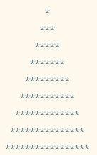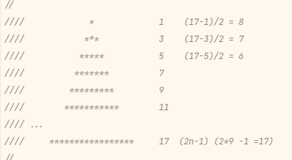 최상단의 별은 1개이며, 모든 줄의 별의 갯수는 홀수이다.